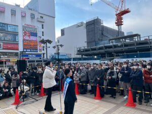 松戸駅前で安藤じゅん子さんと演説。
